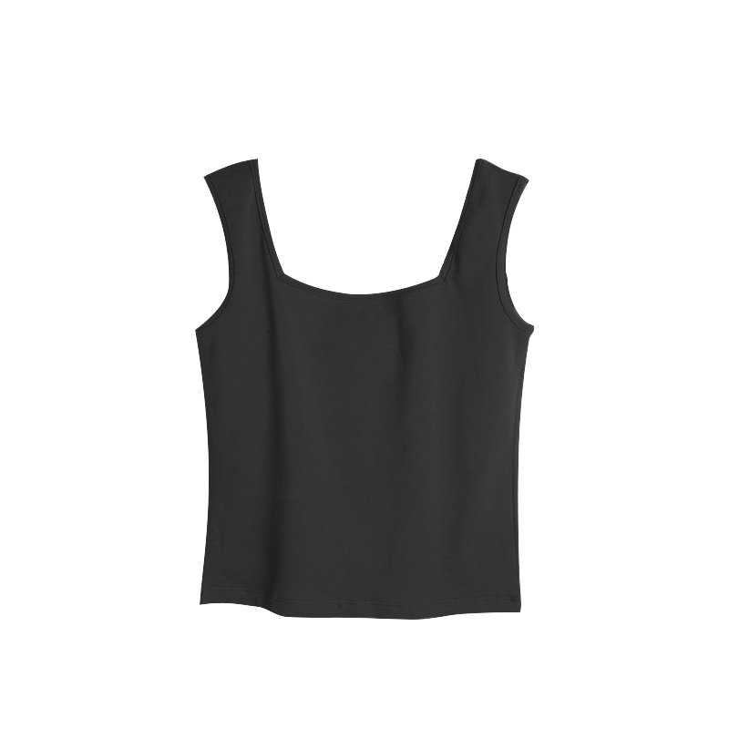 纯棉黑色方领吊带背心女春夏新款西装内搭露脐短款美背遮副乳上衣