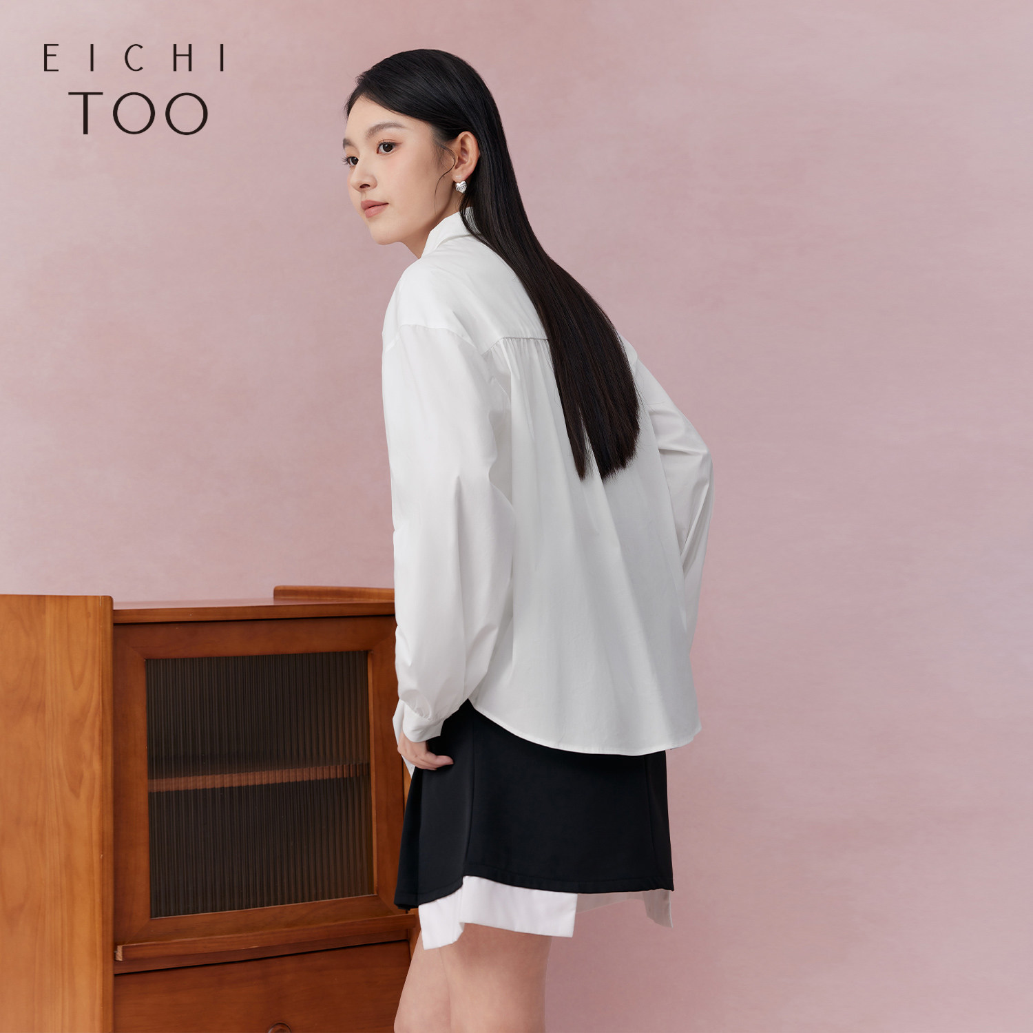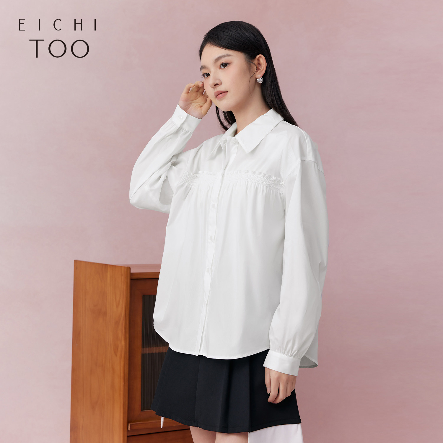爱居兔春季新款设计感时尚翻领长袖休闲衬衫