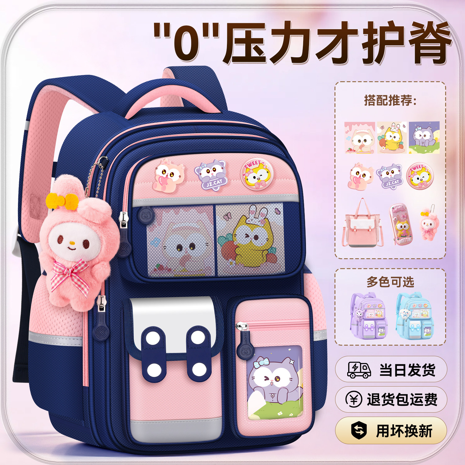 新款儿童书包女生小学生三到六库洛米女孩减负护脊一二年级背包多层大容量英伦美乐蒂双肩