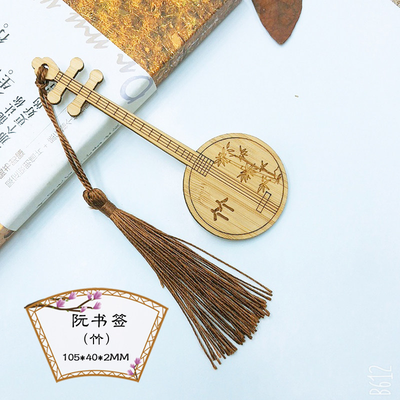 竹木中国风阮琵琶乐器书签梅兰竹菊景区旅游地摊纪念工艺品定制