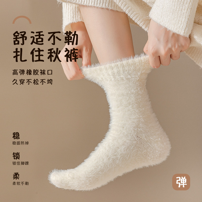加厚水貂绒保暖不掉毛睡眠袜月子袜女中筒袜四季纯棉秋冬多规格