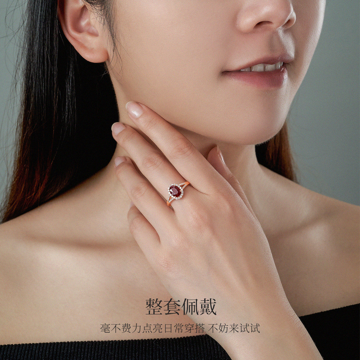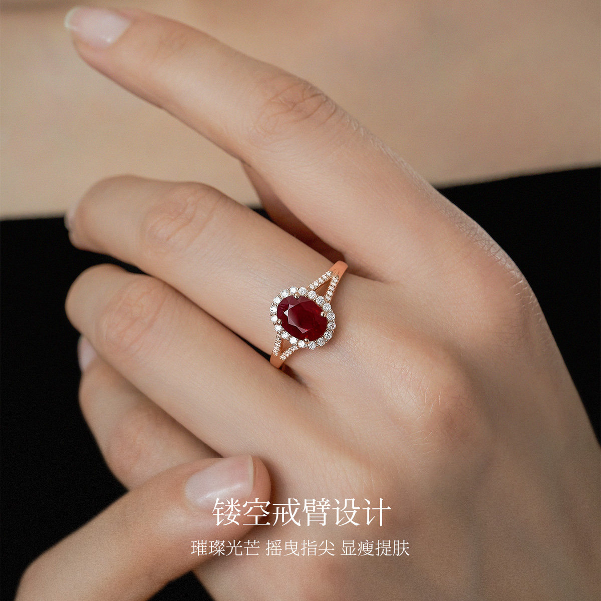 Meluxe美奈18K金红宝石女戒钻石镶嵌高级设计感戒指高奢气质饰品