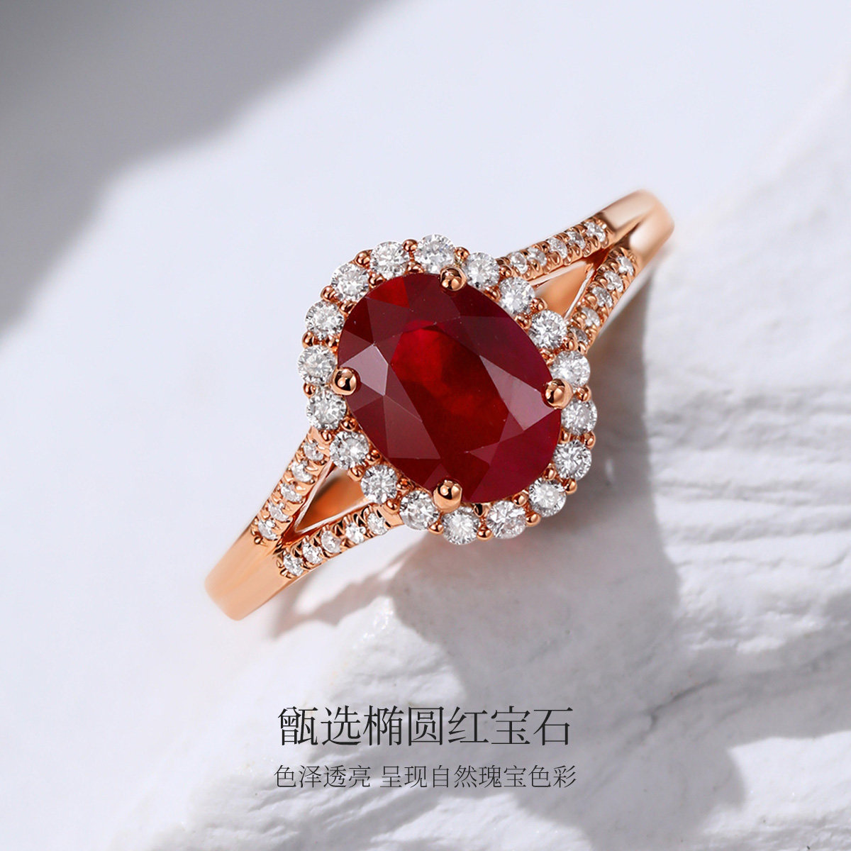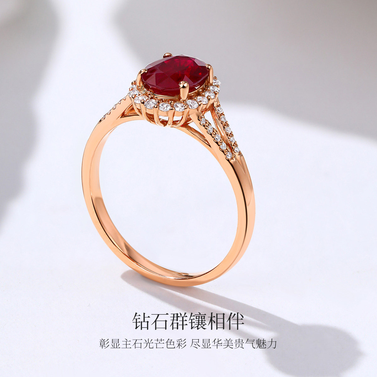 18K金红宝石女戒钻石镶嵌