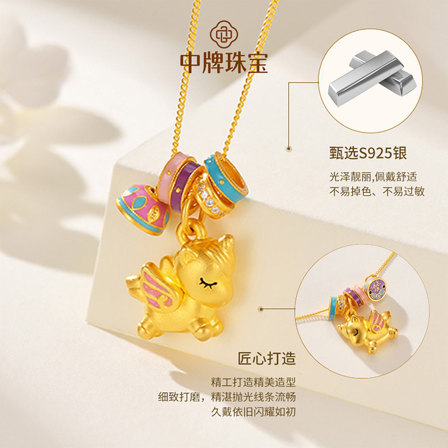 S925银独角兽吊坠项链女款银吊坠银项链项坠送女友老婆生日礼物