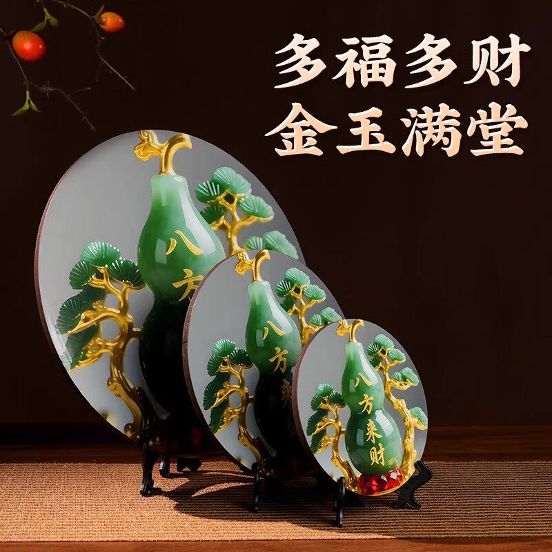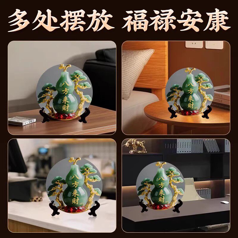 八方来财葫芦福禄装饰招财摆件家用旺宅木质桌面客厅玄关玉石水晶