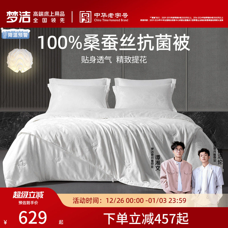 梦洁家纺100%桑蚕丝被空调被春秋被抗菌冬被芯子母被二合一蚕丝被