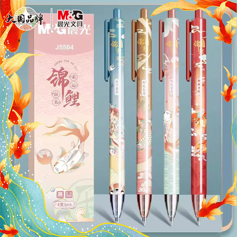 晨光好运锦鲤中性笔速干故宫联名国风限定礼盒套装K35按动0.5mm碳素笔学生考试专用黑色水笔高颜值国潮圆珠笔