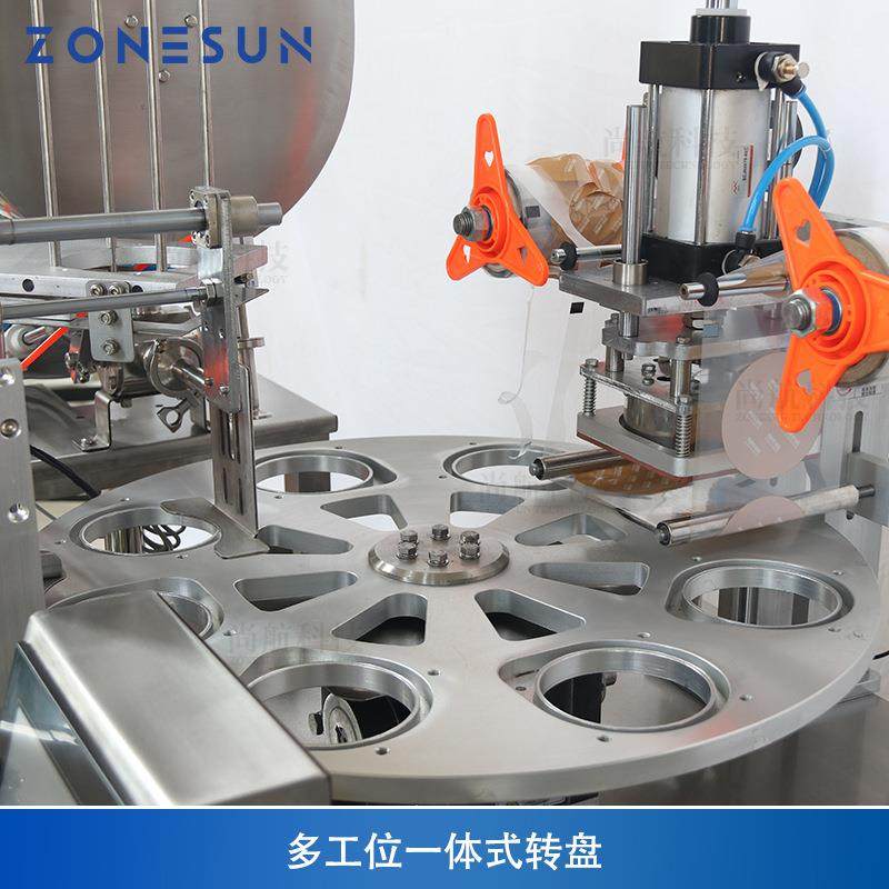 酸奶果冻冰淇淋酱料灌装封杯机 全自动定制转盘灌装封膜机
