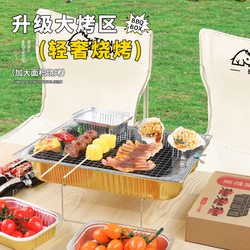 【露营季】一次性烧烤炉锡纸盒大容量露营烧烤架户外便携式煮茶