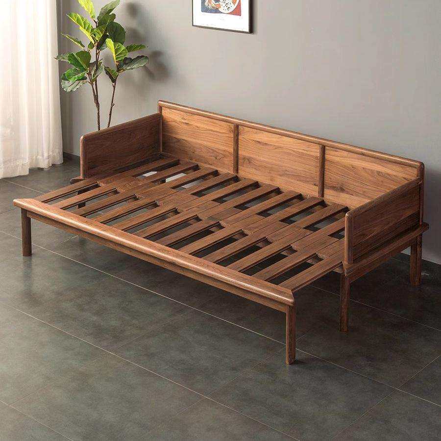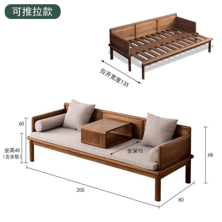 新中式黑胡桃木罗汉床简约白蜡实木伸缩沙发床小户型推拉禅意床榻