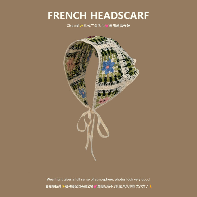 田园风三角巾头巾女2025新款包头三角形海边多巴胺针织发带小头饰