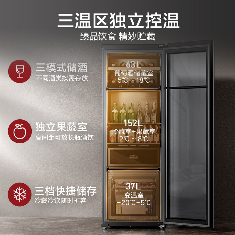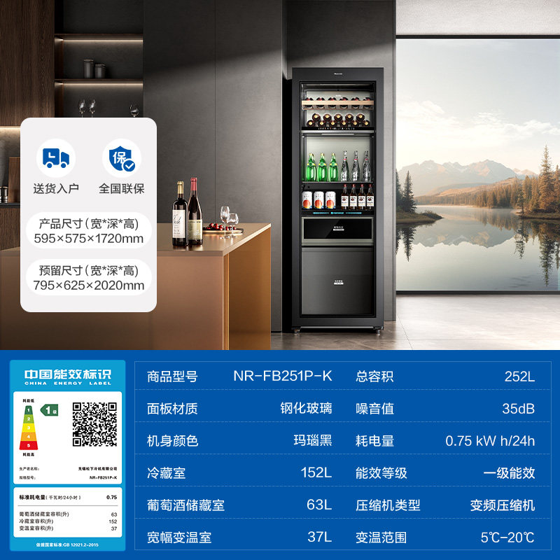 松下新品252L家用冰吧立式变温酒柜无霜抗菌一级节能静音 FB251P