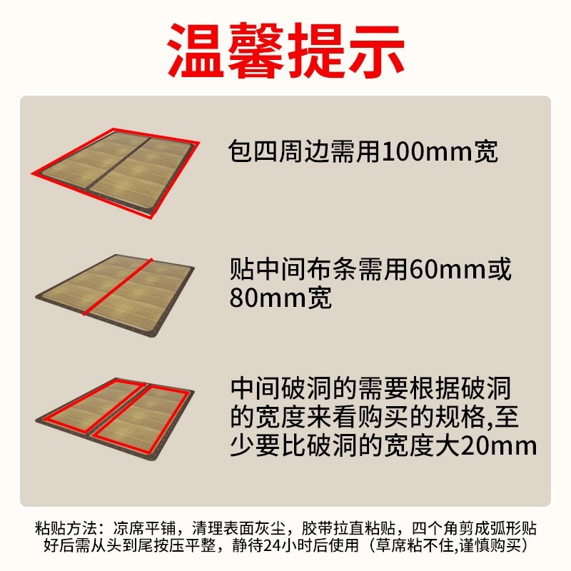 老式凉席破洞遮盖修复贴竹席边缘布开线固定修补封边贴席子竹条断裂防割手自粘补丁贴藤席中间裂开免缝裹线贴