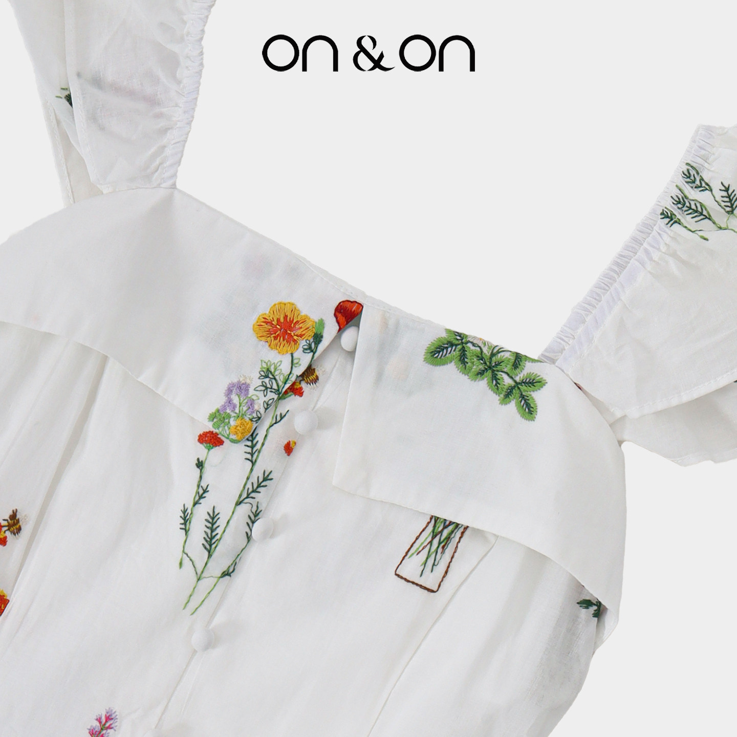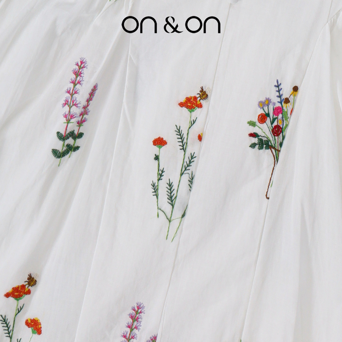 ON&ON/安乃安2026春夏新款法式小飞袖精致刺绣碎花甜美连衣裙