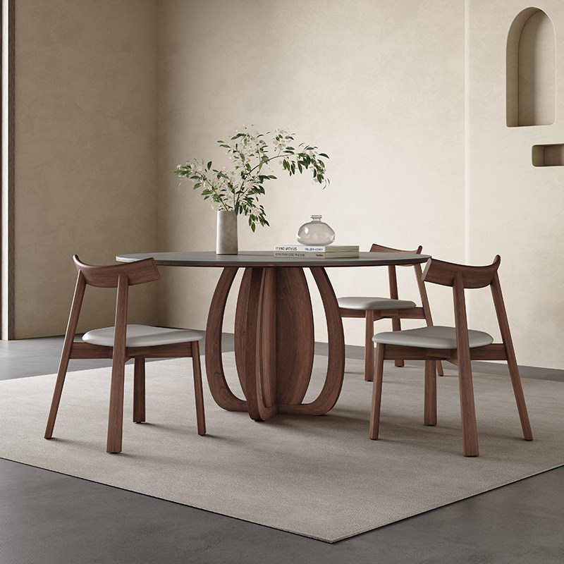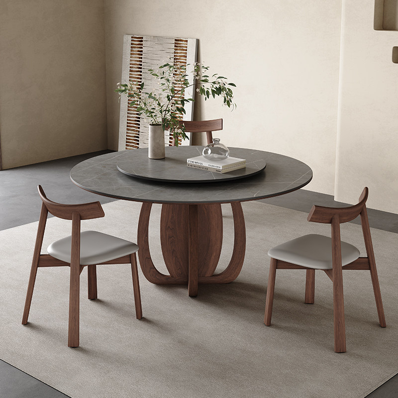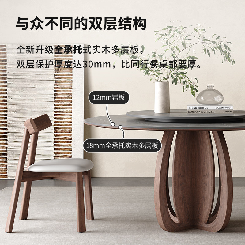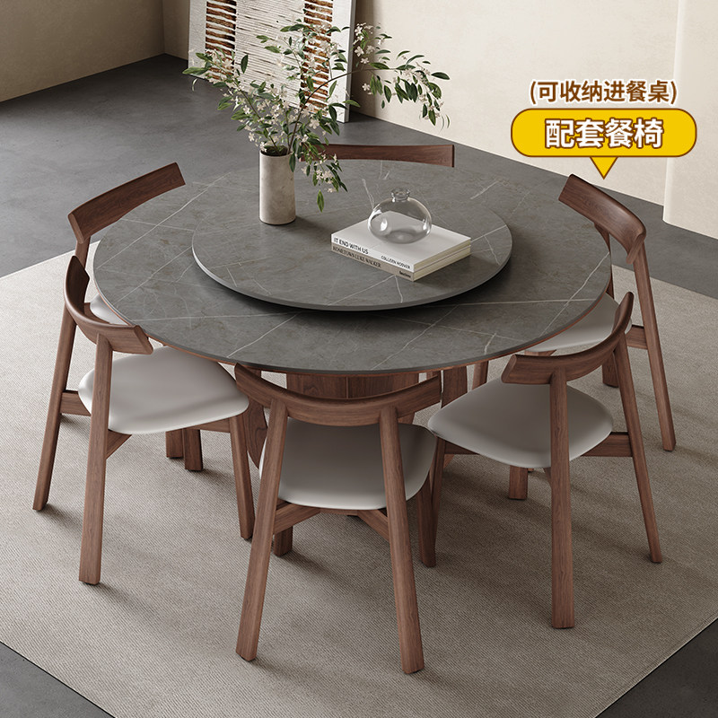 中古风实木餐桌圆桌小户型现代简约灰色高端全托北欧圆形岩板餐桌