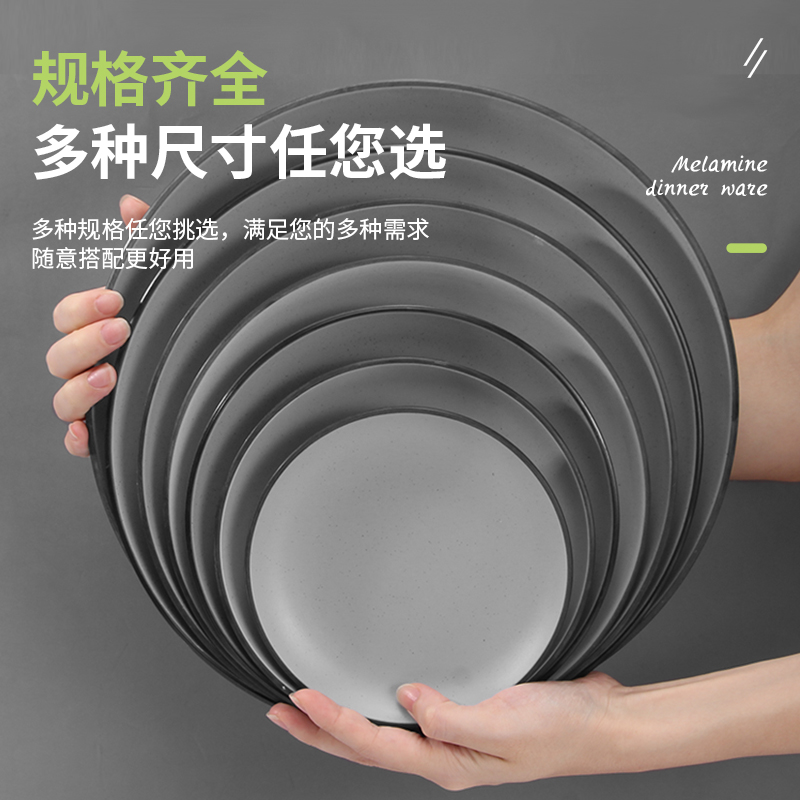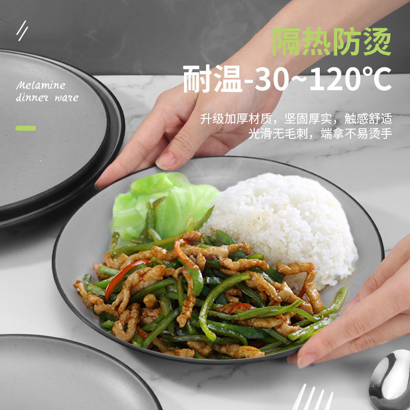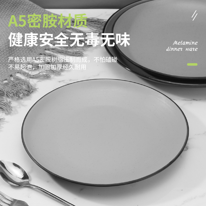 A5星空灰密胺盘子圆形仿瓷餐具塑料圆盘自助餐盘菜盘盖浇饭盘商用