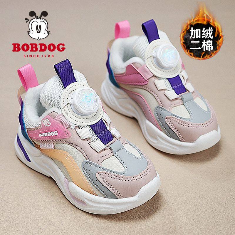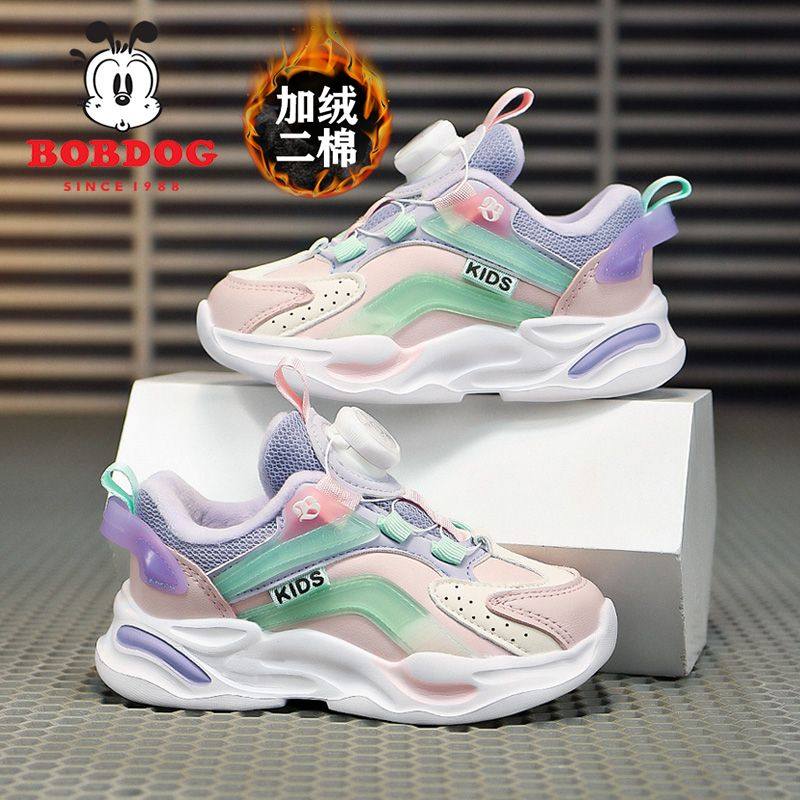 巴布豆女童棉鞋加绒保暖2025冬季新款女孩运动鞋抗寒男童跑步鞋子