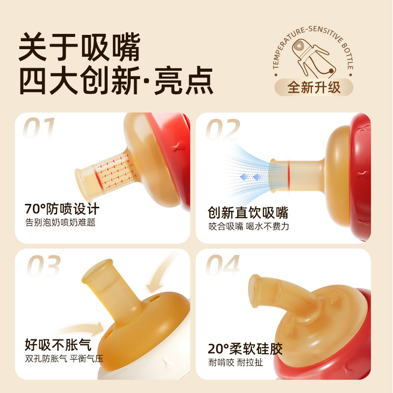 贝亲实感FUN宽口径双把手PPSU防胀防呛奶瓶奶嘴新生儿官方旗舰店
