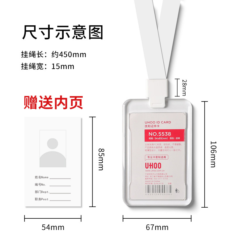 优和透明亚克力工作证卡套带挂绳定做员工胸卡胸牌挂牌制作工号姓名厂牌工牌定制企业logo门禁卡银行卡饭卡