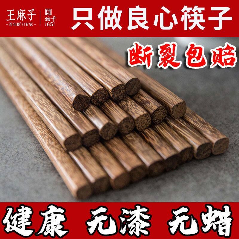 王麻子鸡翅木筷子家庭家用抗菌防霉防滑耐高温高档木筷官方旗舰店