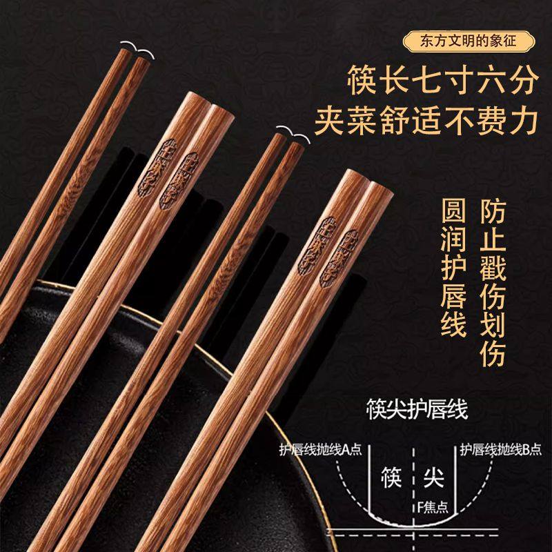 唐宗筷鸡翅木筷子家用新款无漆无蜡防霉抗菌中式实木筷可进洗碗机