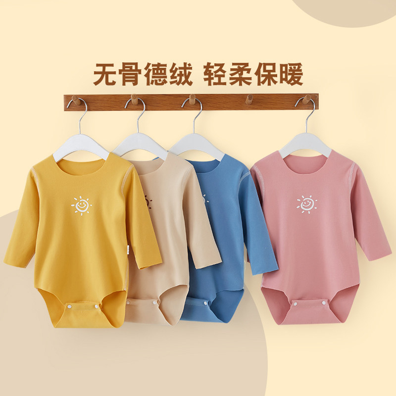婧麒婴儿德绒长袖包屁衣男女宝宝打底内衣秋冬加厚保暖连体衣哈衣