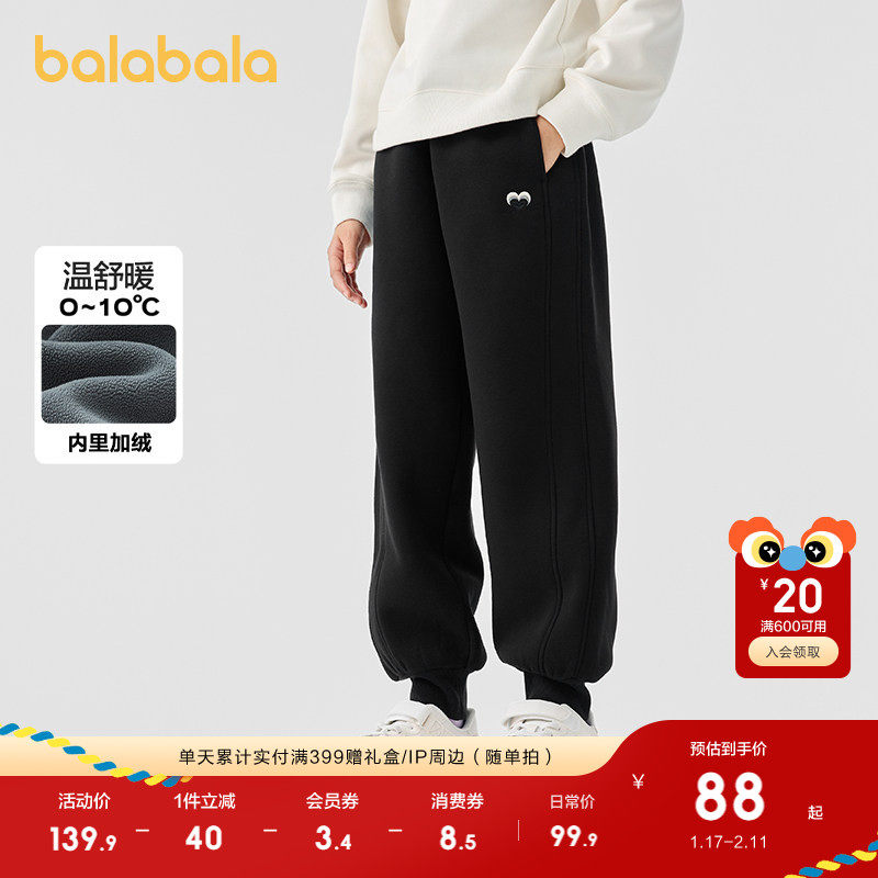 巴拉巴拉童装女童裤子冬装加绒长裤保暖儿童运动舒适束脚时尚百搭