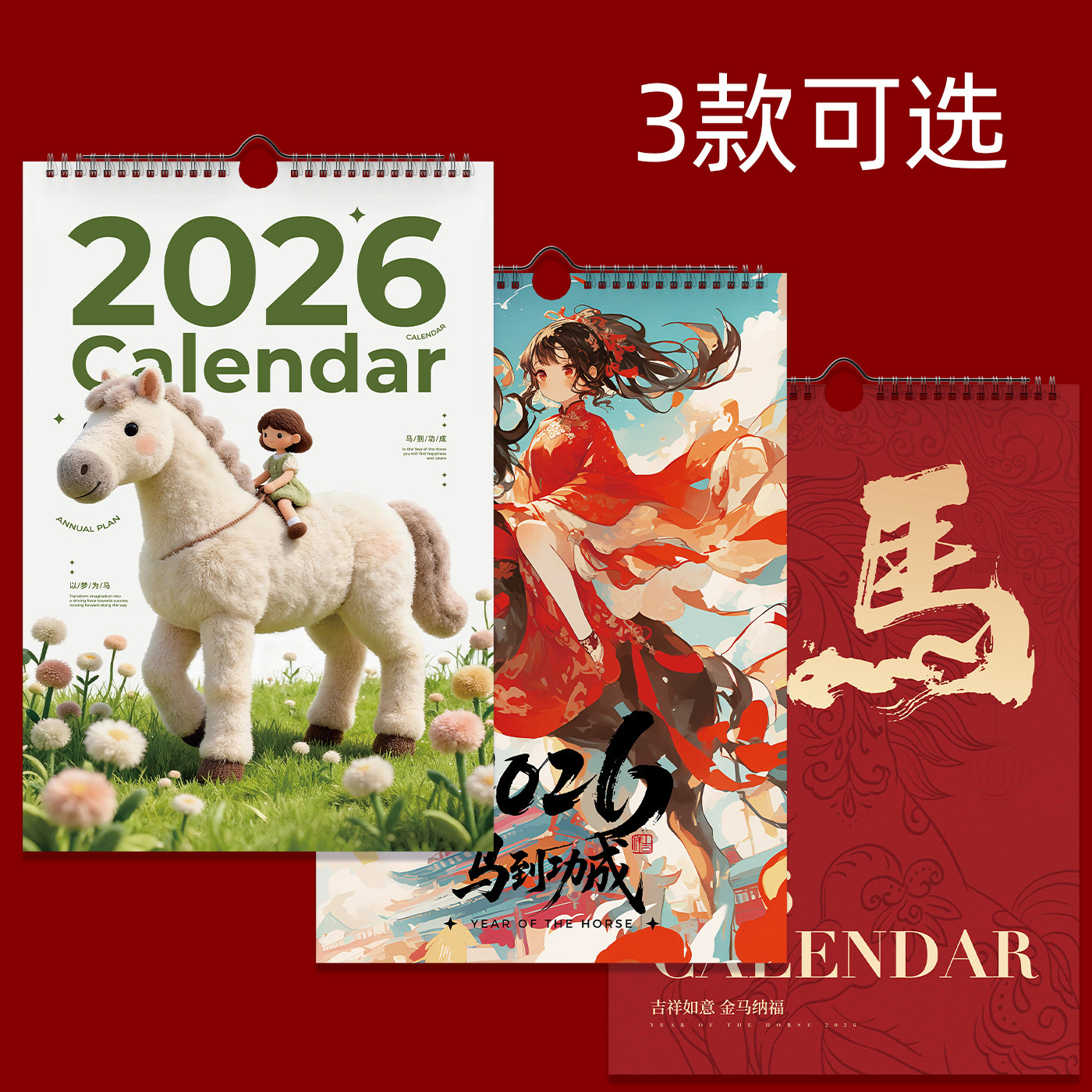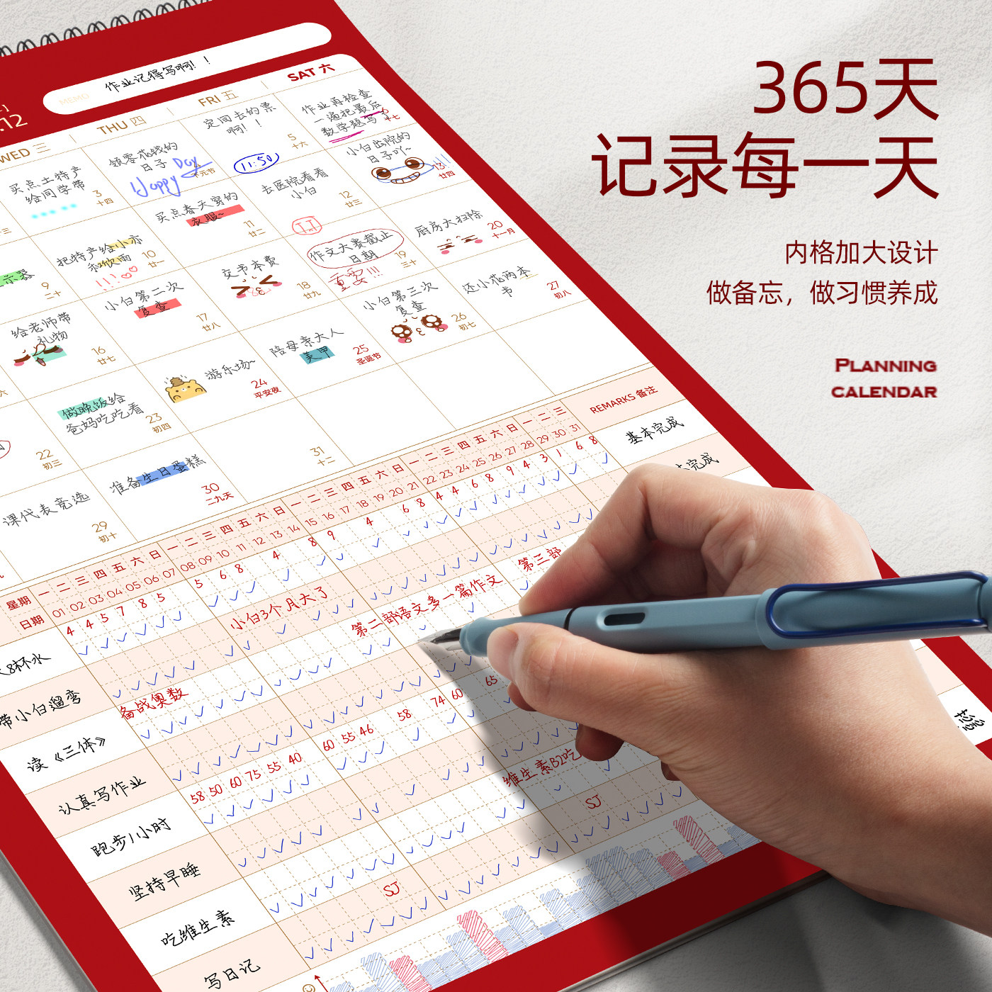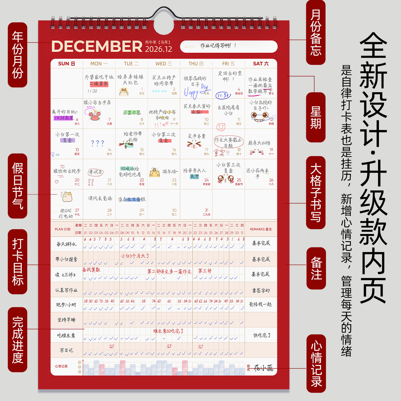 挂历2026年家用ins风自律打卡马年创意挂墙装饰画大号挂式老黄历日历本计划本考研倒计时365天计划表月历定制
