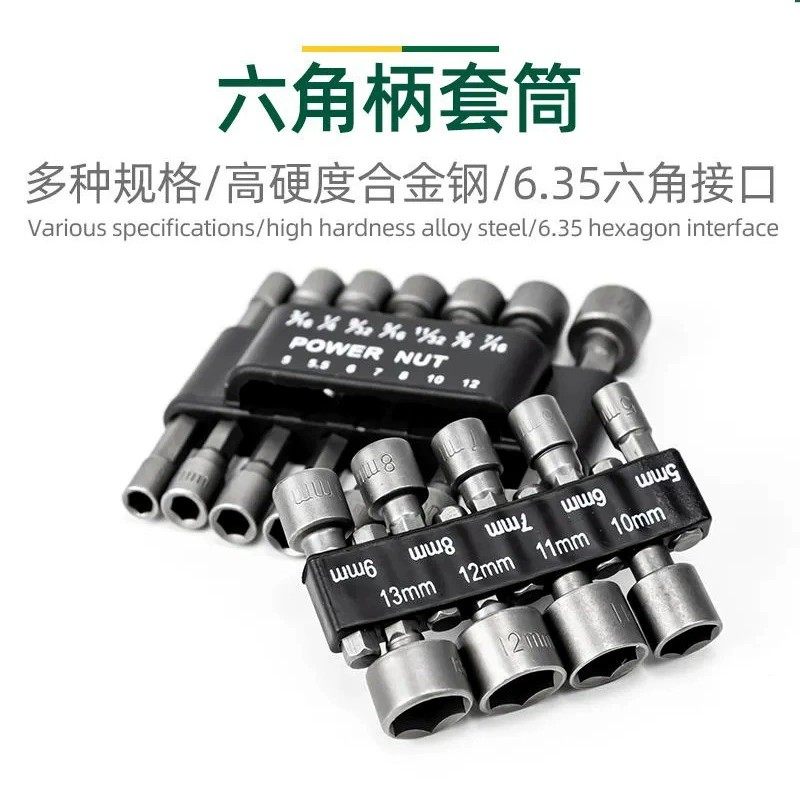 风批套筒六角柄套筒头手电钻气动风批套头电动批头自攻螺丝14件套