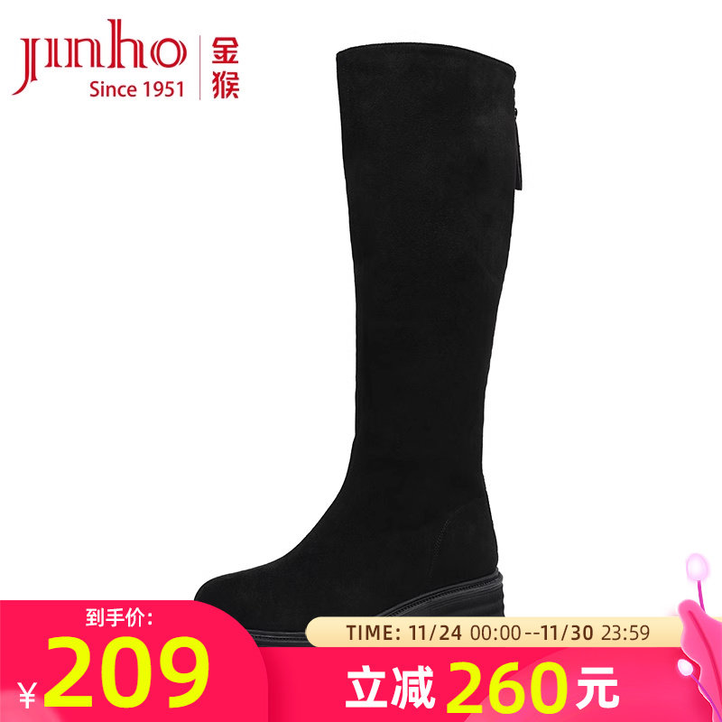 金猴女鞋长靴小个子骑士靴2025年新款冬季厚底加绒高跟女靴长筒靴