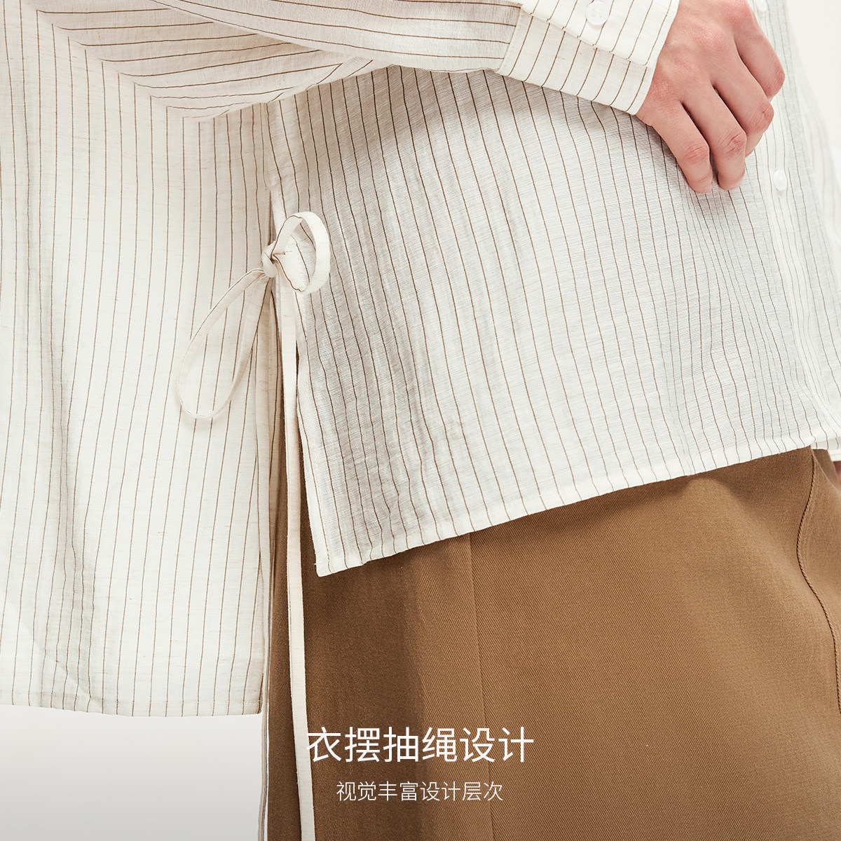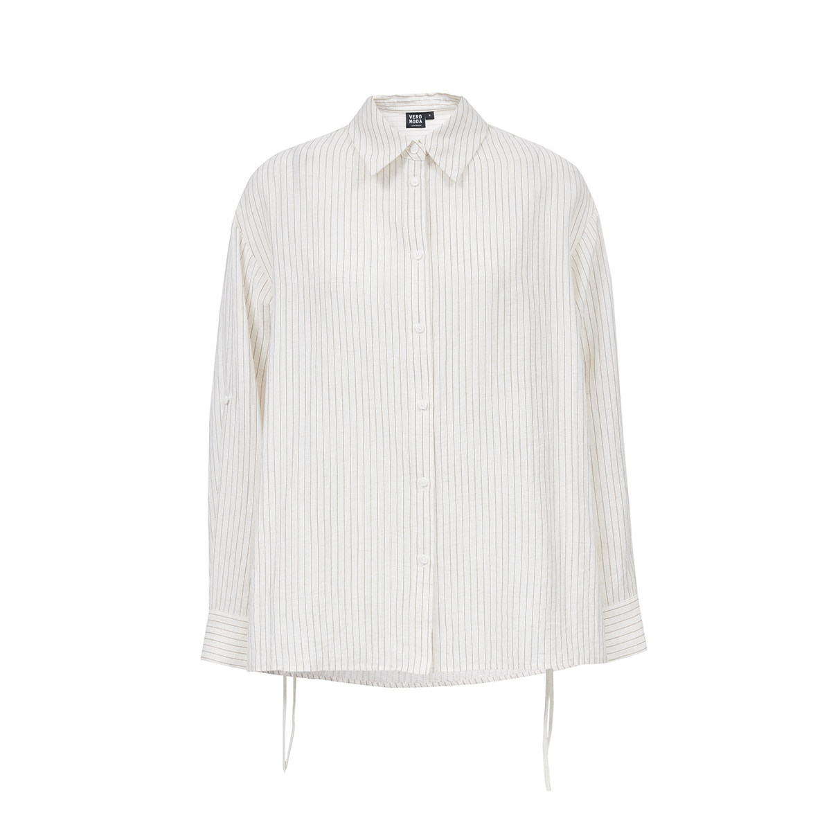 Vero Moda衬衫2025夏季新款含亚麻下摆系带条纹宽松衬衫325205020