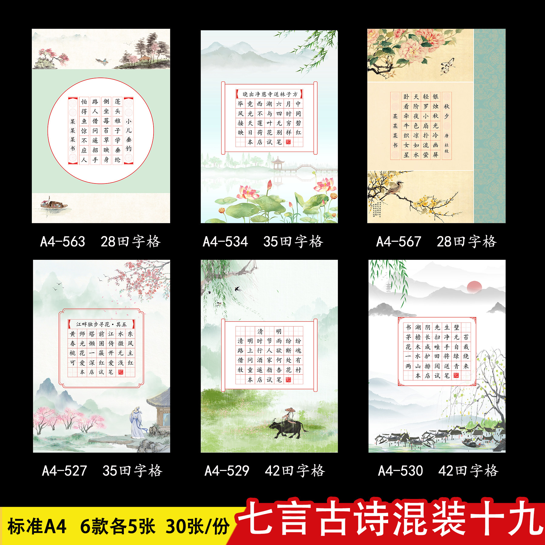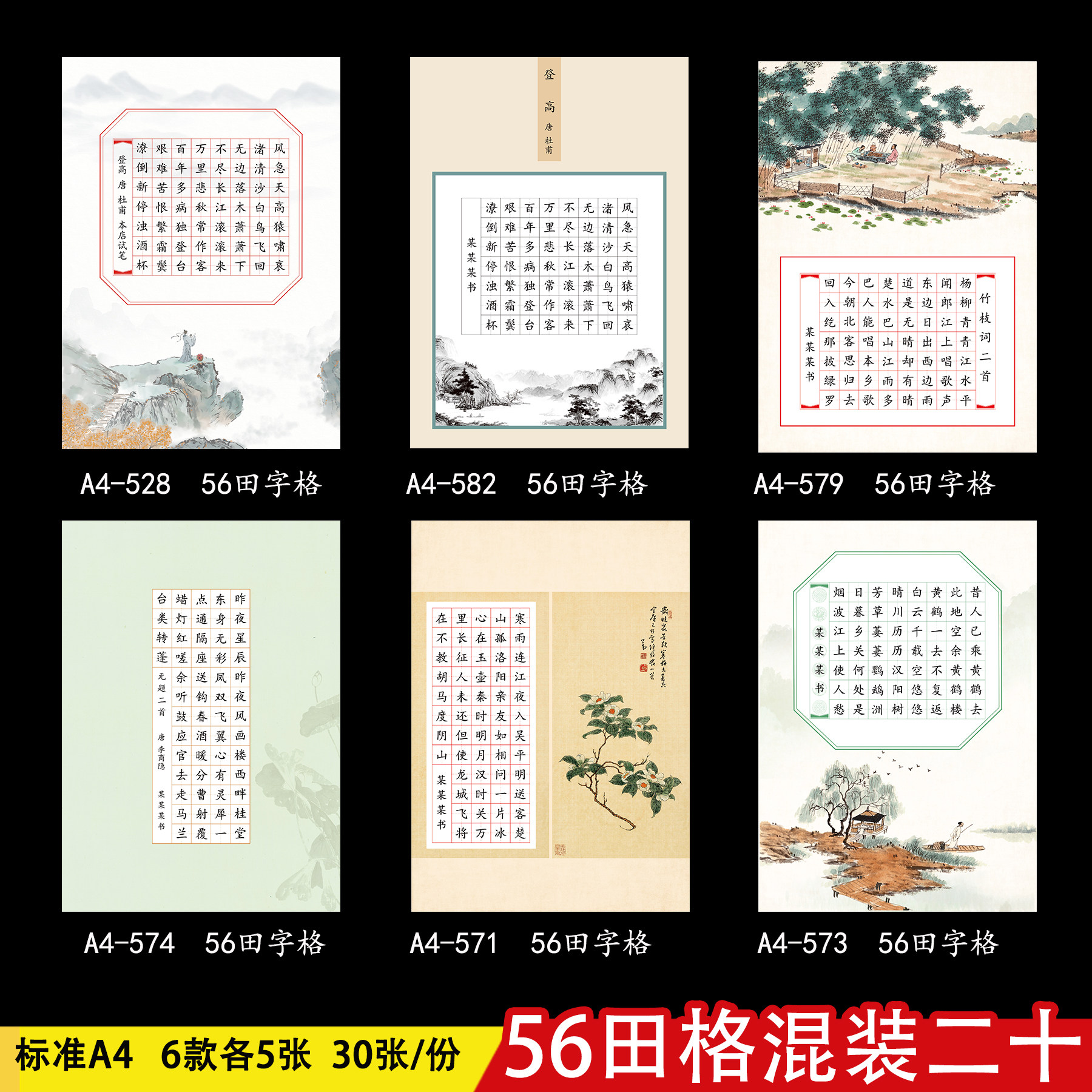a4硬笔书法作品纸小学生钢铅笔作品比赛纸田字格写字五言七言加厚