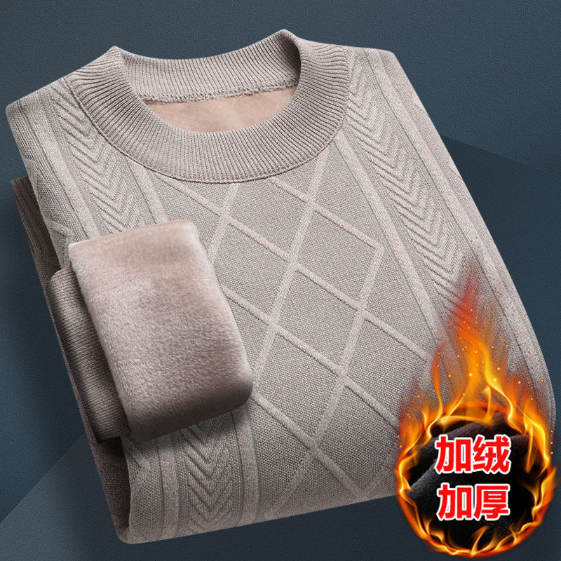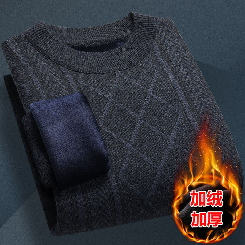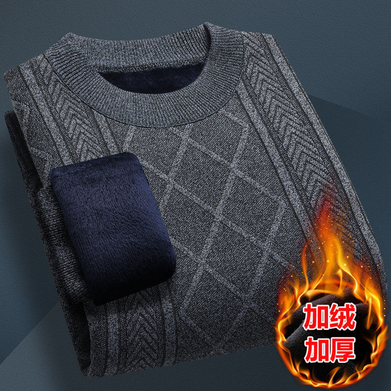 秋冬季毛衣男加绒加厚打底衫中老年长袖针织衫秋冬保暖上衣爸爸装