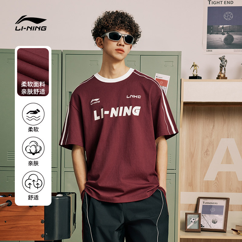 [达人]李宁短袖男女情侣圆领体恤美式复古款宽松运动T恤