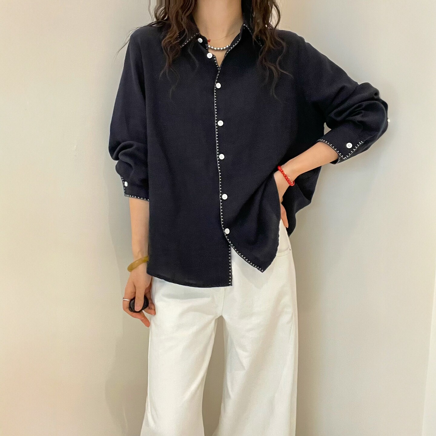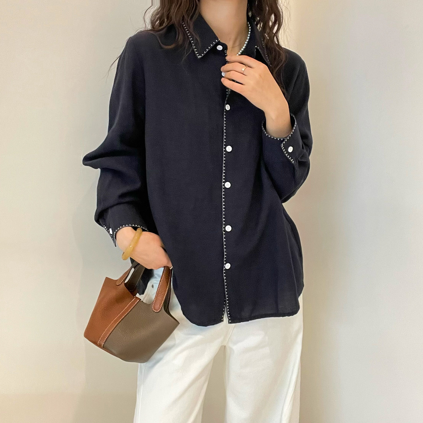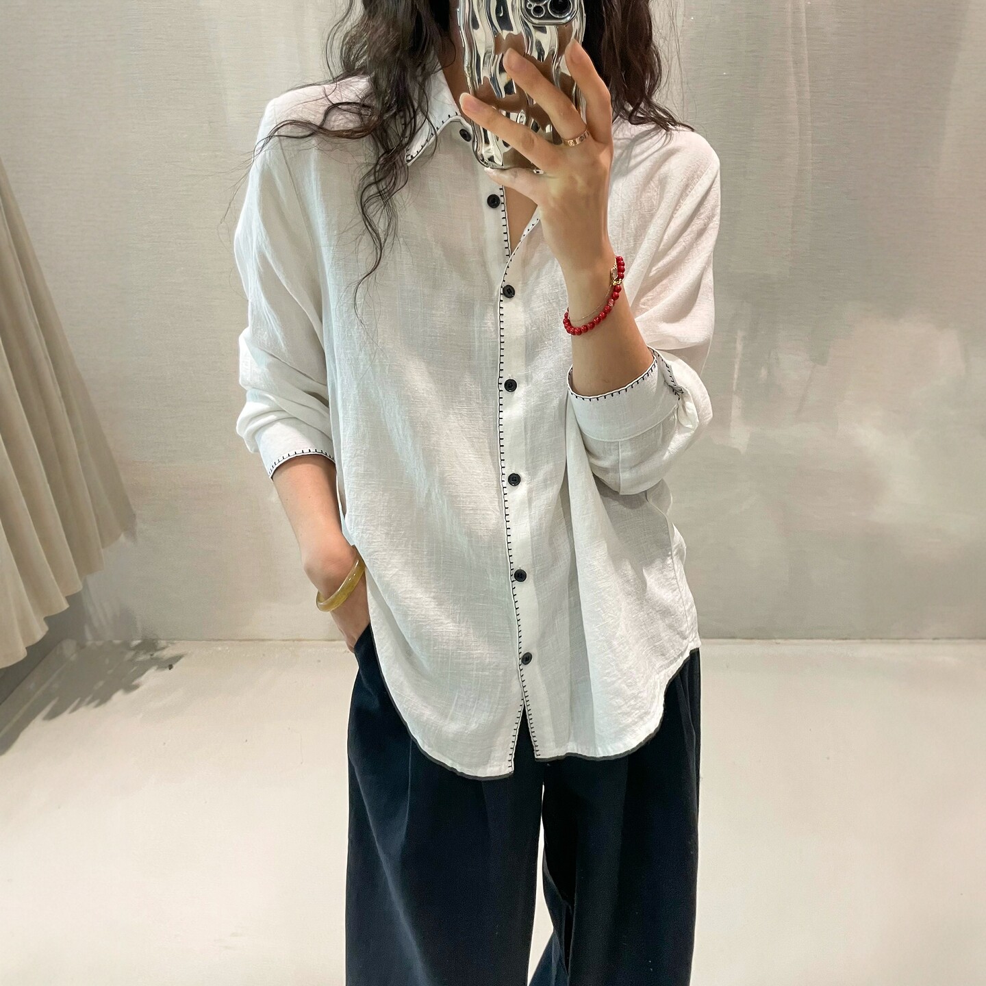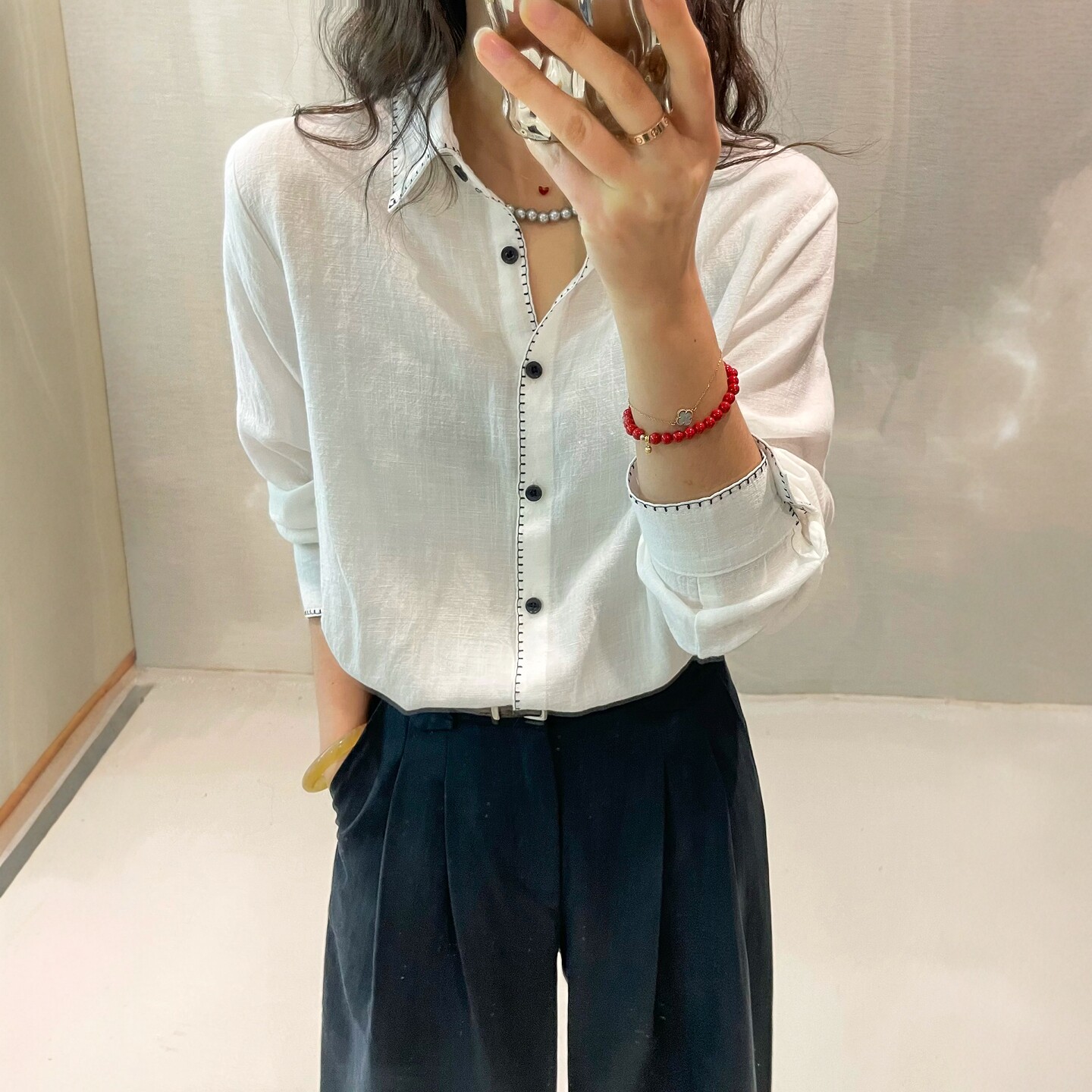 复古明线天丝亚麻衬衫女欧洲站2026春装新款欧货女装设计感上衣潮