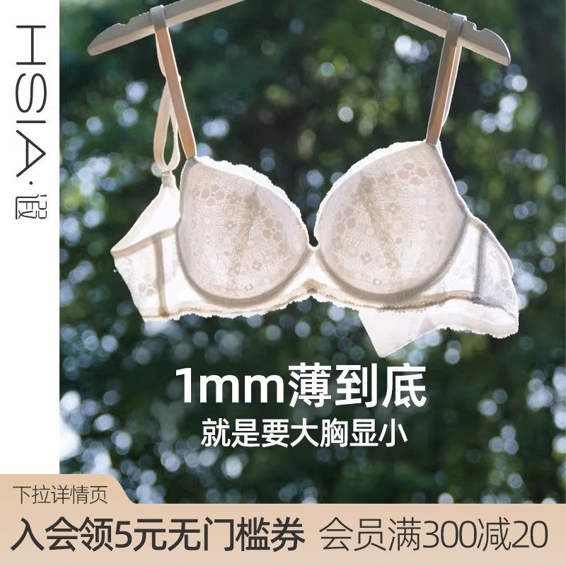 【小花漾】遐1mm超薄全罩杯蕾丝内衣女大码防下垂大胸显小文胸罩