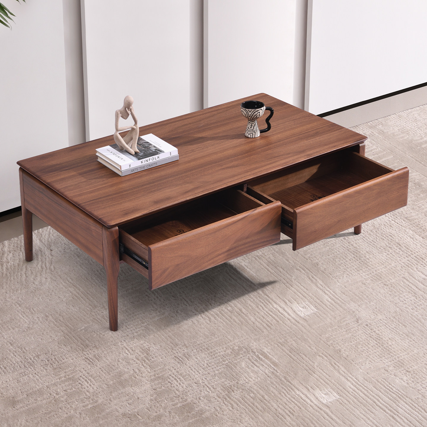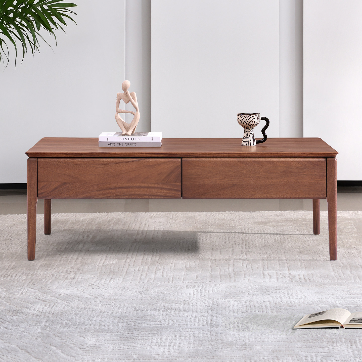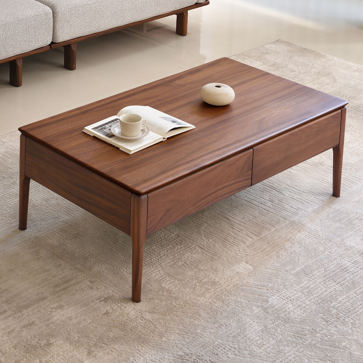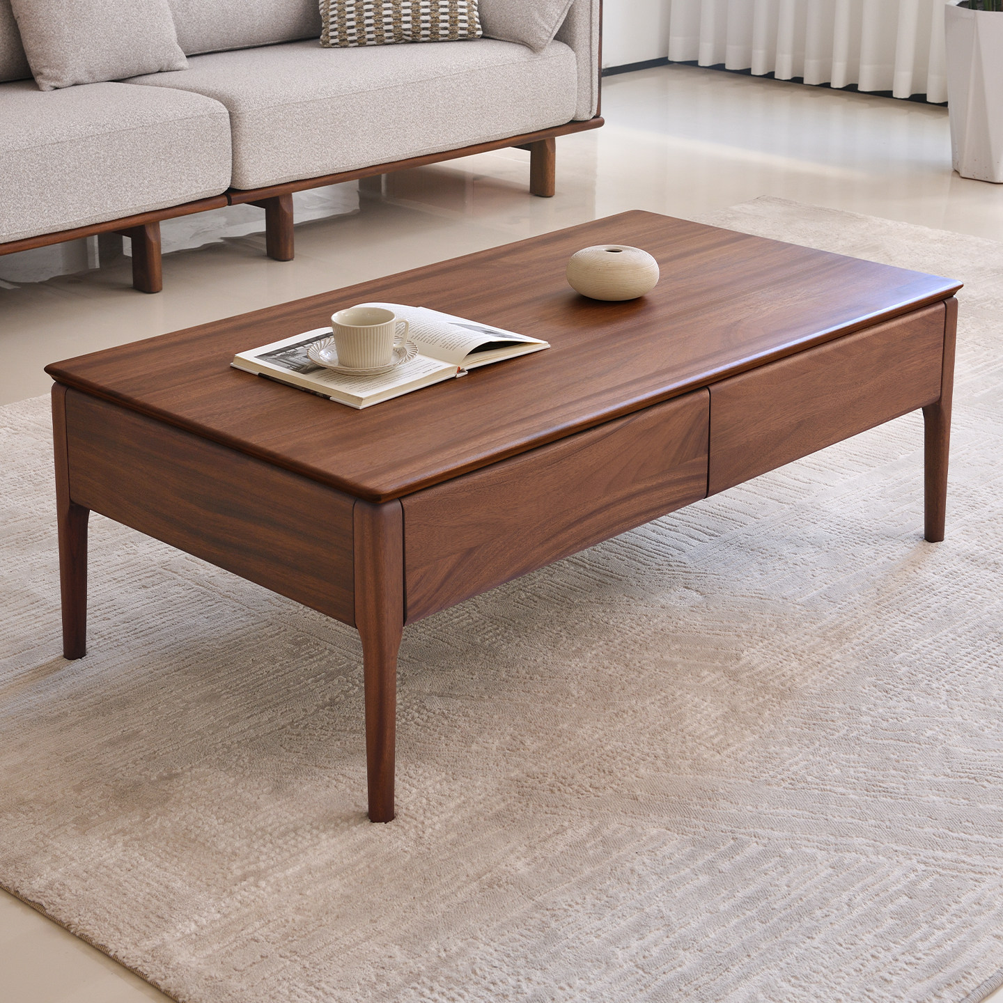 现代简约全实木茶几客厅家用北欧茶桌茶台核桃木长方形2026新款