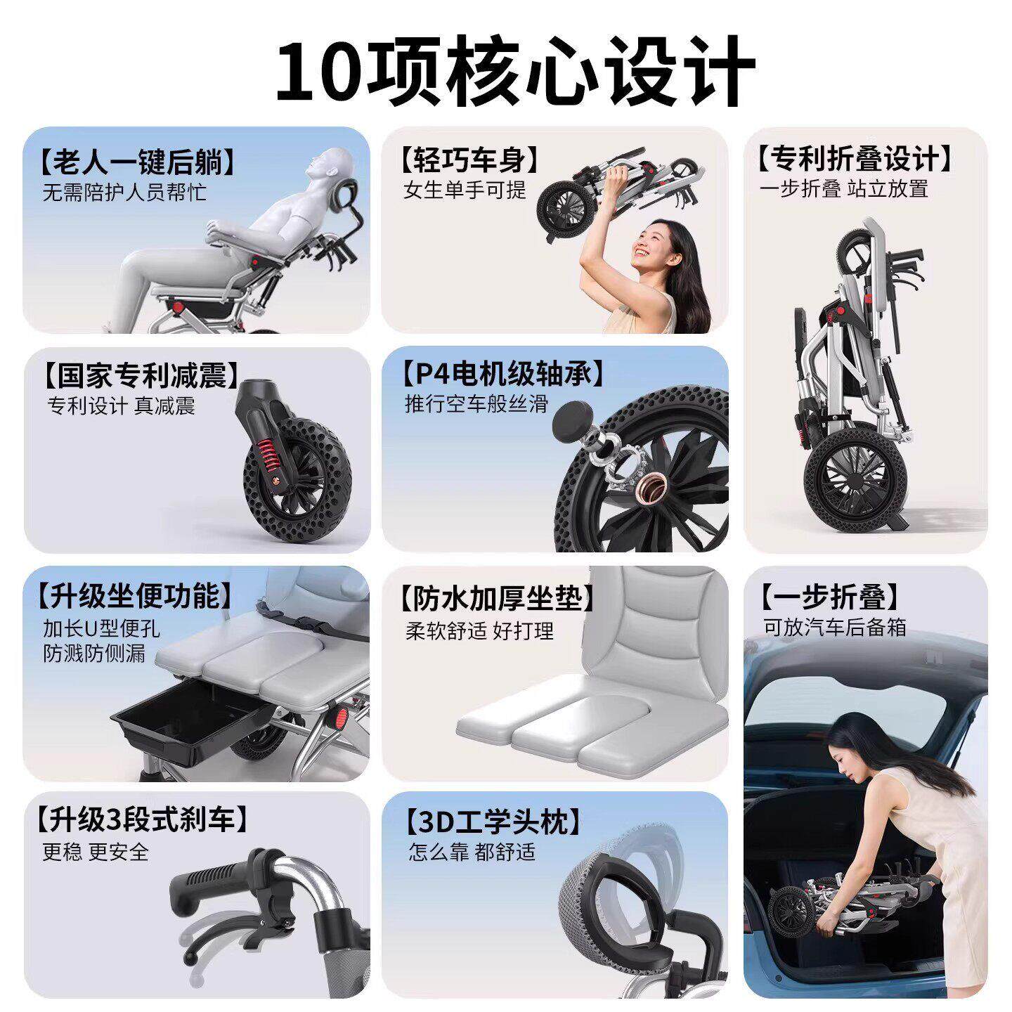 核心技术铝合金轮椅轻便折叠老人专用带坐便可洗澡代步手推车