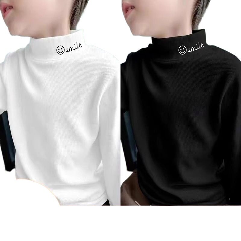 全棉儿童打底衫女童A类100%纯棉半高领男宝宝长袖t恤春秋透气上衣