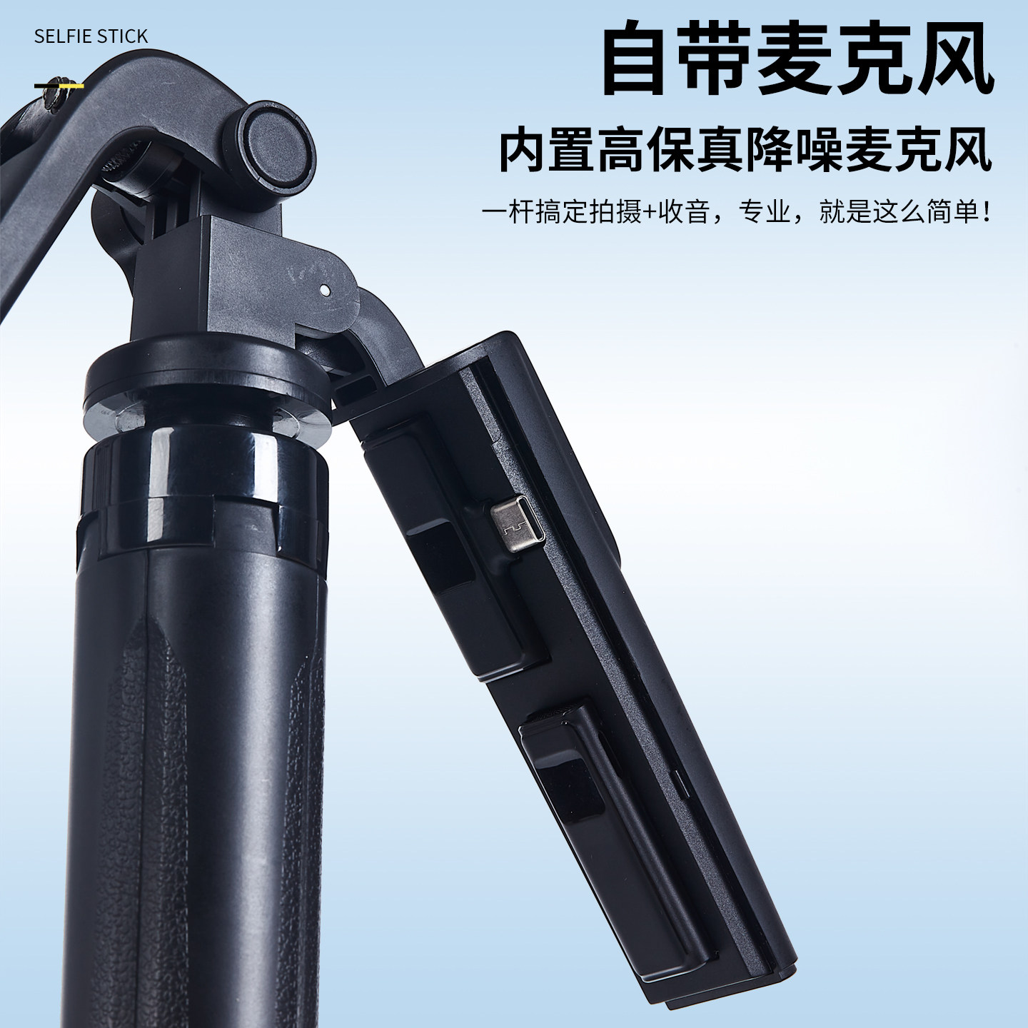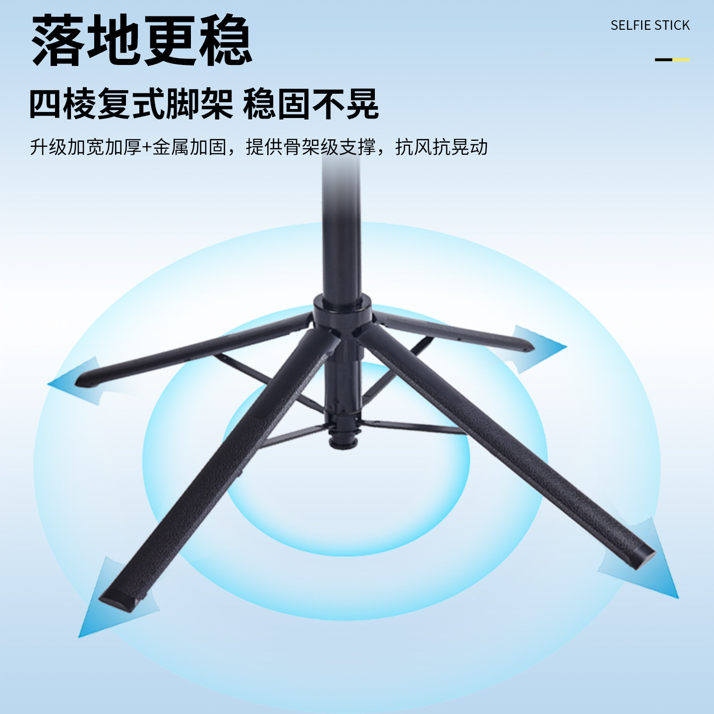 叠品A21P2025新款金属多功能补光自拍杆三脚架遥控拍照神器手机直播支架360°旋转拍照抖音蓝牙便携式防抖