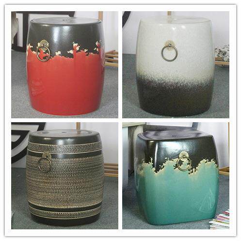 中式四方渐变陶瓷凳子复古圆墩花园鼓凳家居古筝坐墩软装陶艺凳