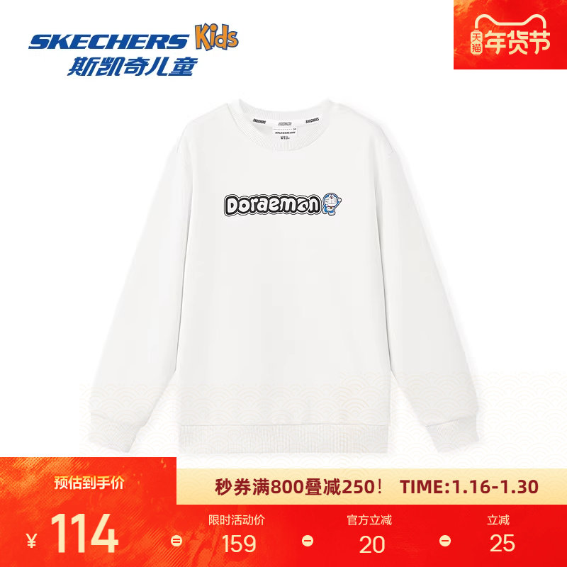 斯凯奇哆啦A梦联名系列儿童中性针织套头卫衣柔软舒适保暖