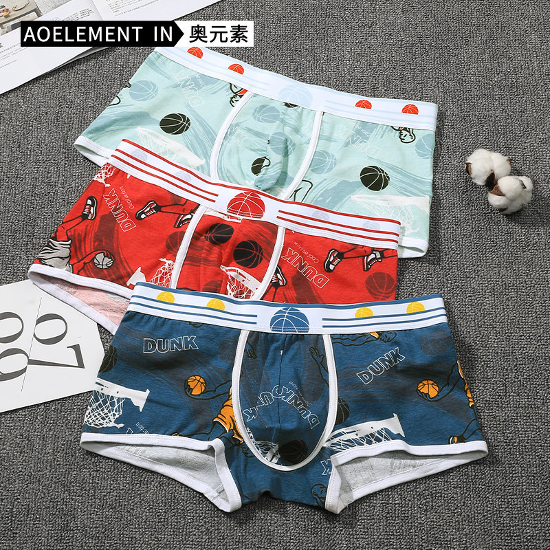 3条装内裤男士纯棉质四角裤衩男生透气潮流个性感运动平角短裤头