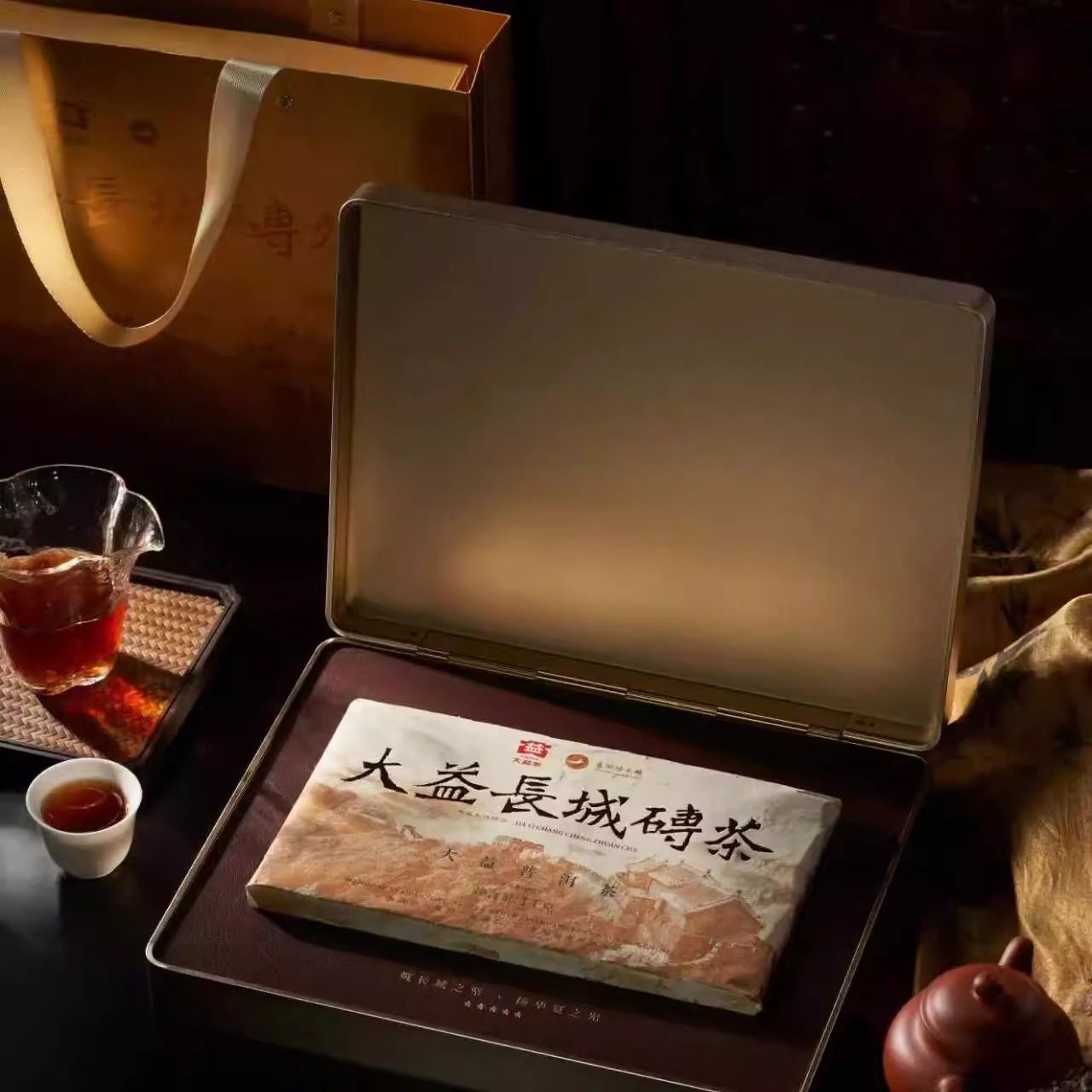 【顺丰包邮】大益普洱茶2024年长城砖古树料1000g云南熟茶叶礼盒
