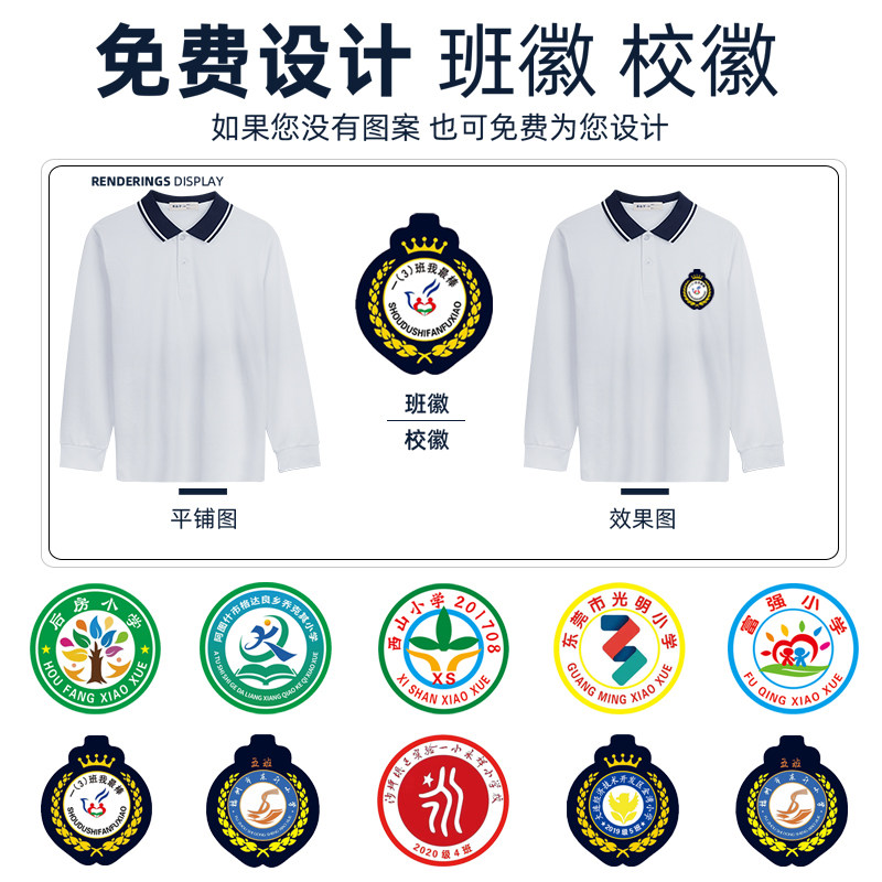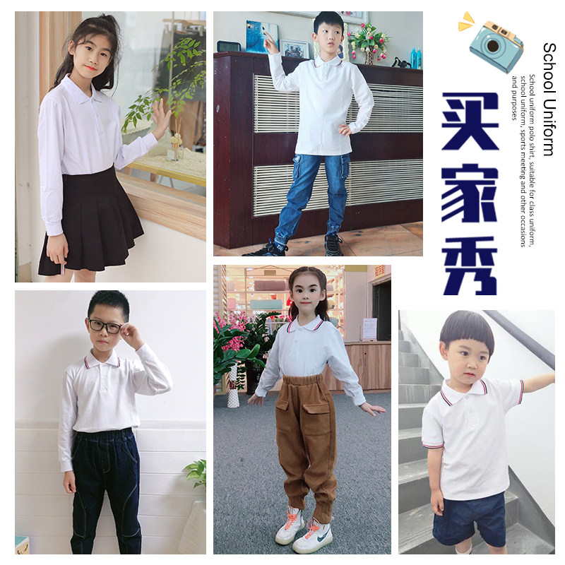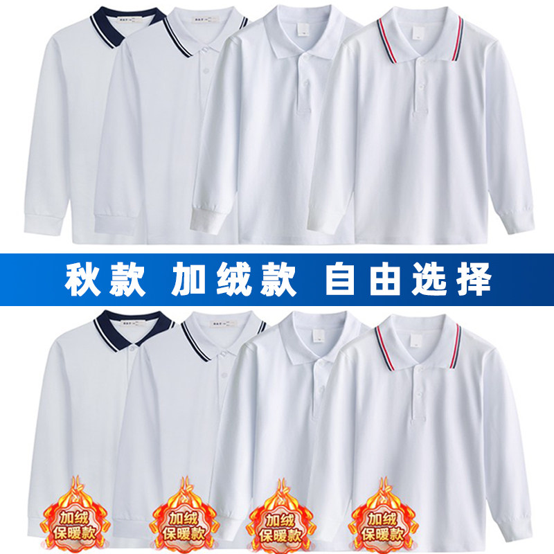 中小学生校服内搭上衣春秋青少年白长袖t恤翻领polo衫初中生班服