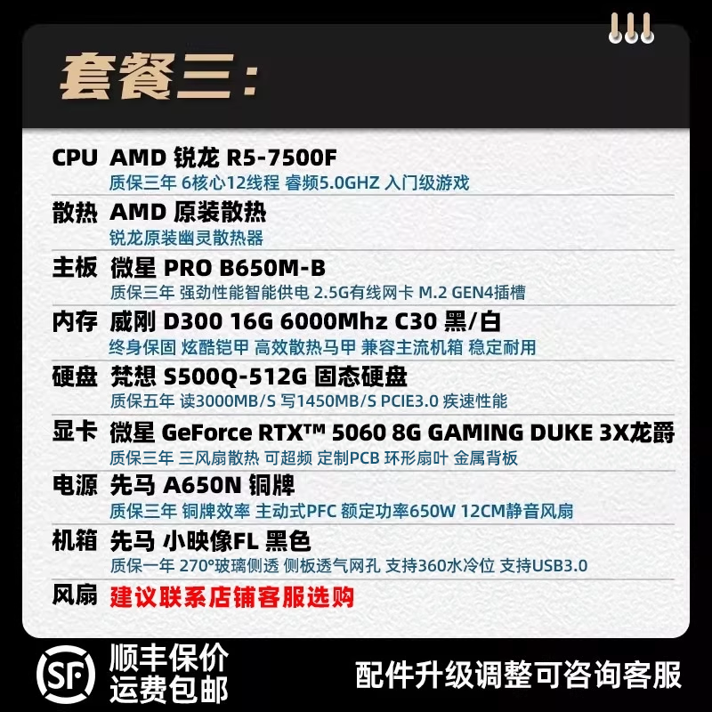 装机猿玩家店微星RTX5060-8G龙爵三风扇/12400F/5600台式电脑主机