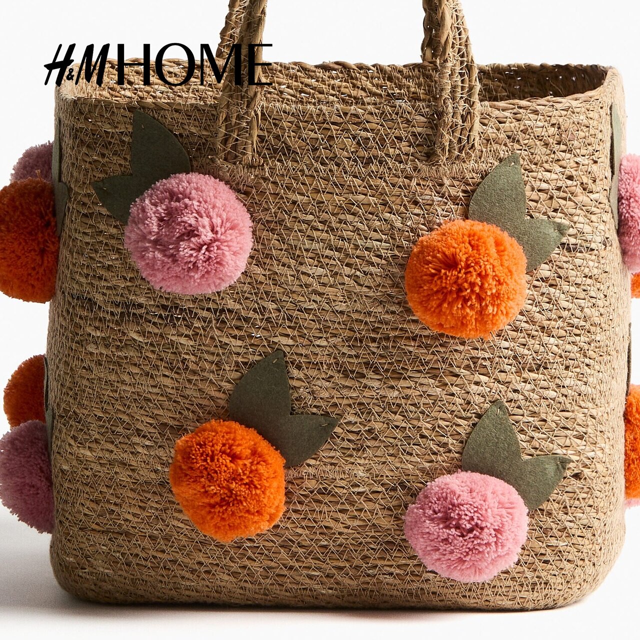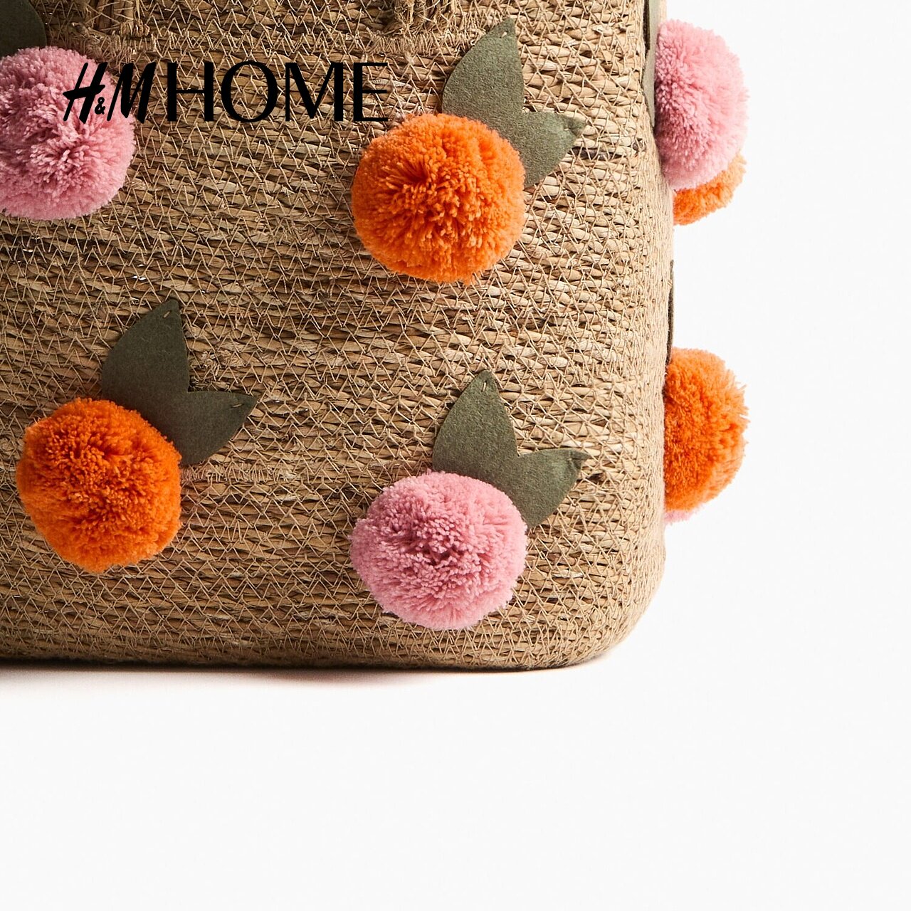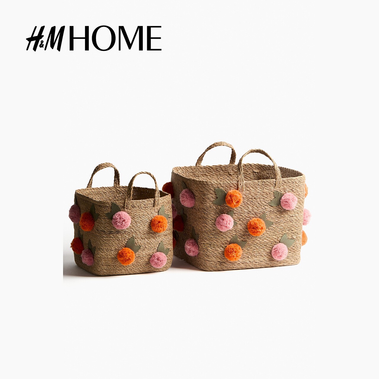 HM HOME2026春季新款绒球装饰小号海草编织收纳篮1316114