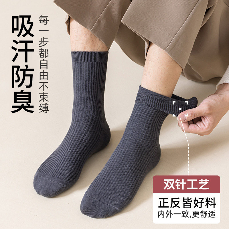 【50双】袜子男士中筒袜耐穿防滑长筒袜吸汗防臭中长袜四季款男袜