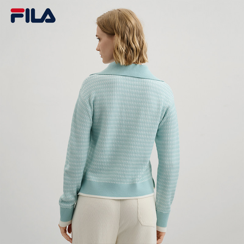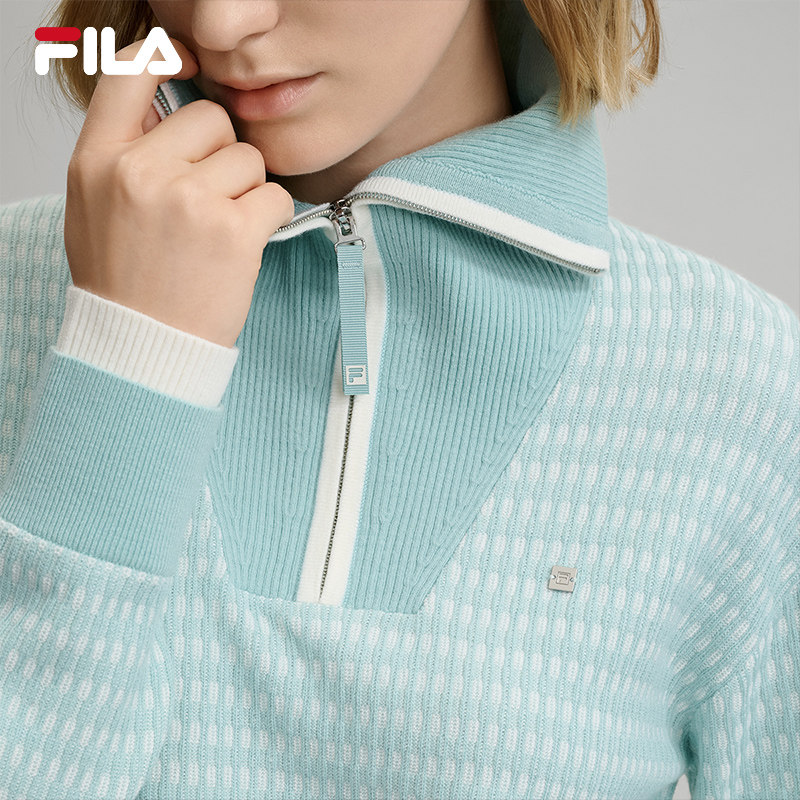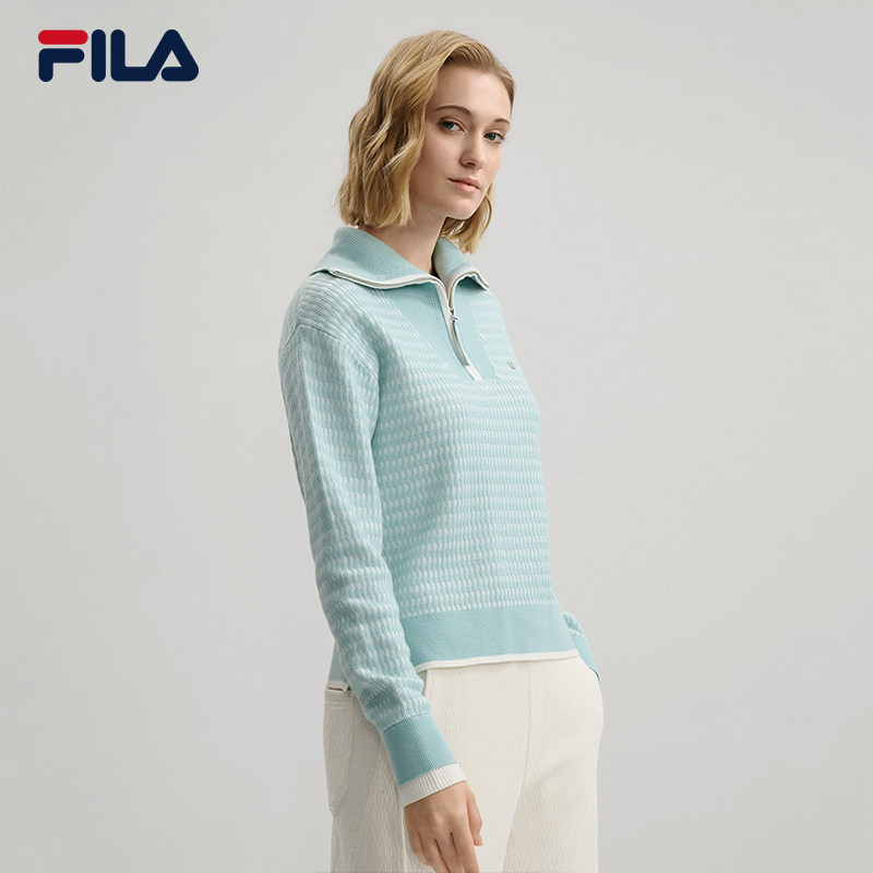 FILA 斐乐官方长袖编织衫毛衣女冬季新款休闲半拉链翻领保暖上衣