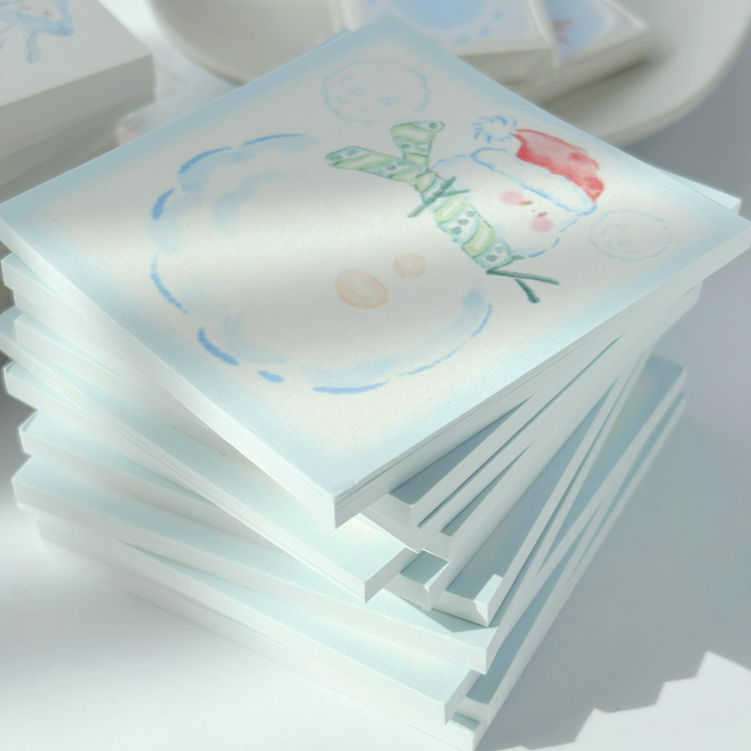 花夭studio 冬日雪人手绘便签本 水母金鱼手帐日记随手记无粘性